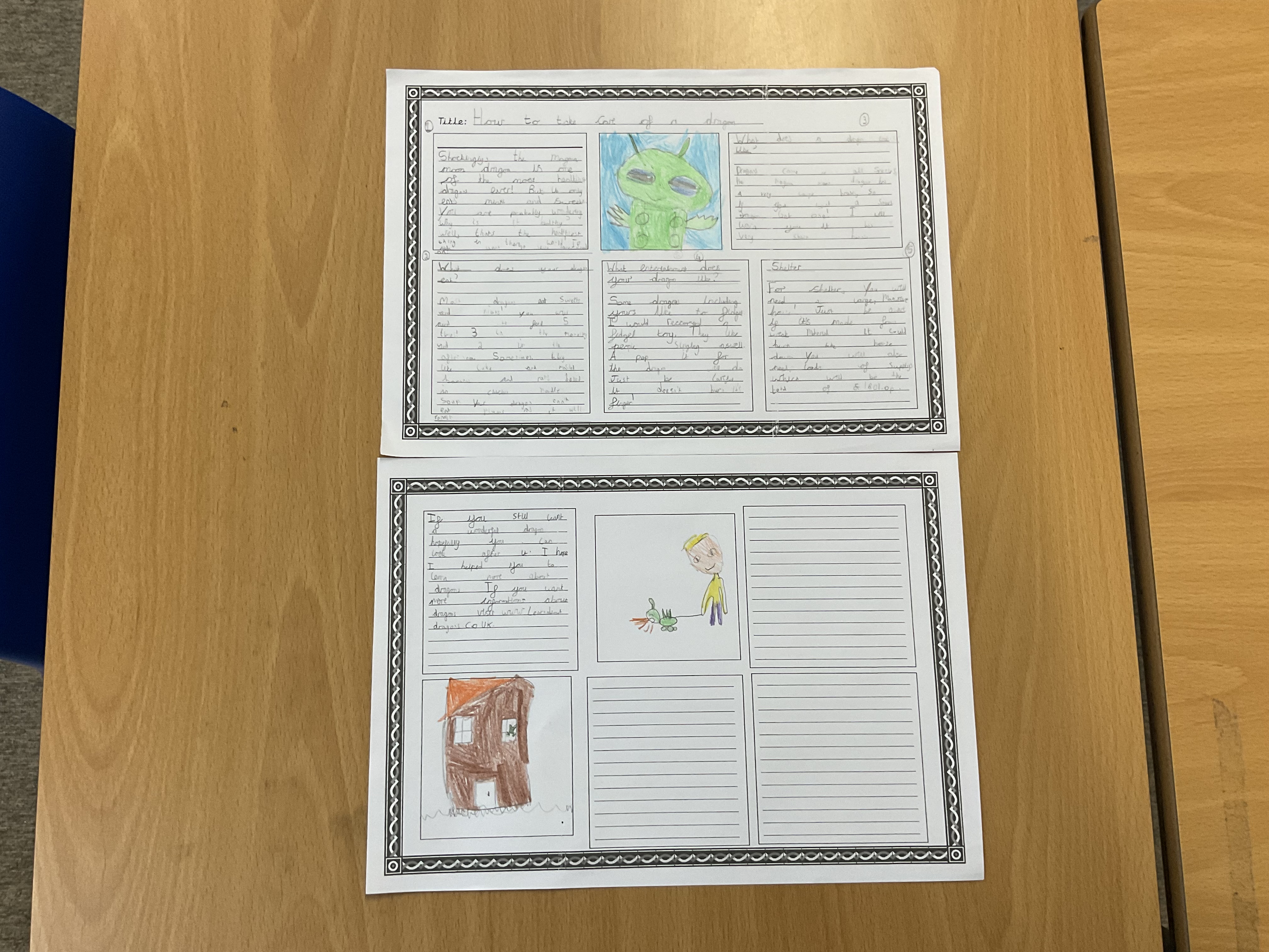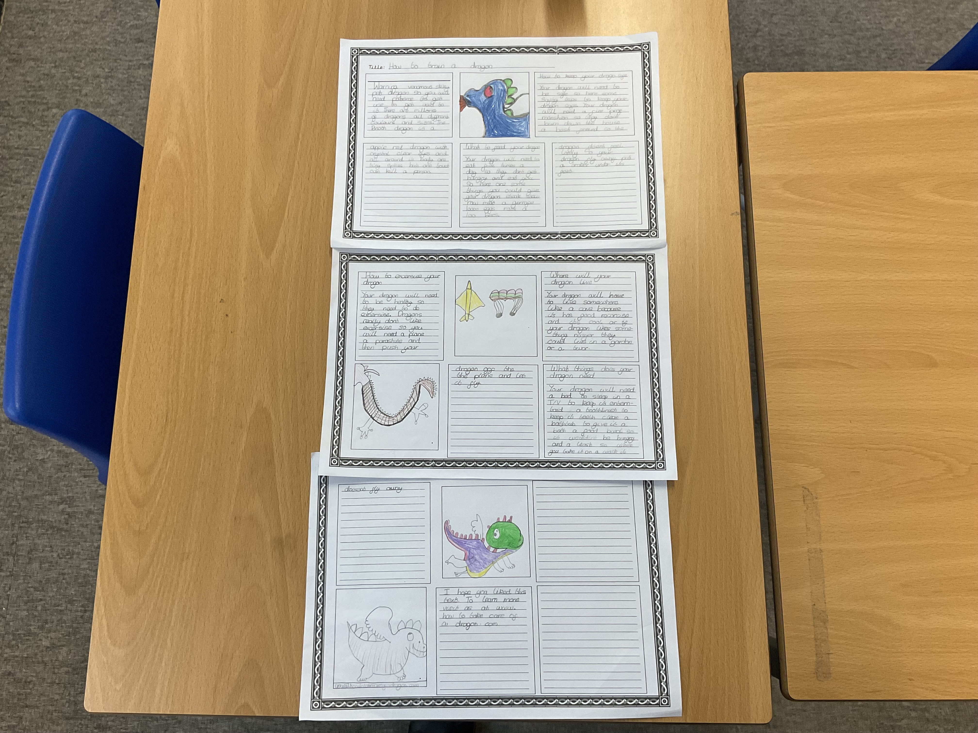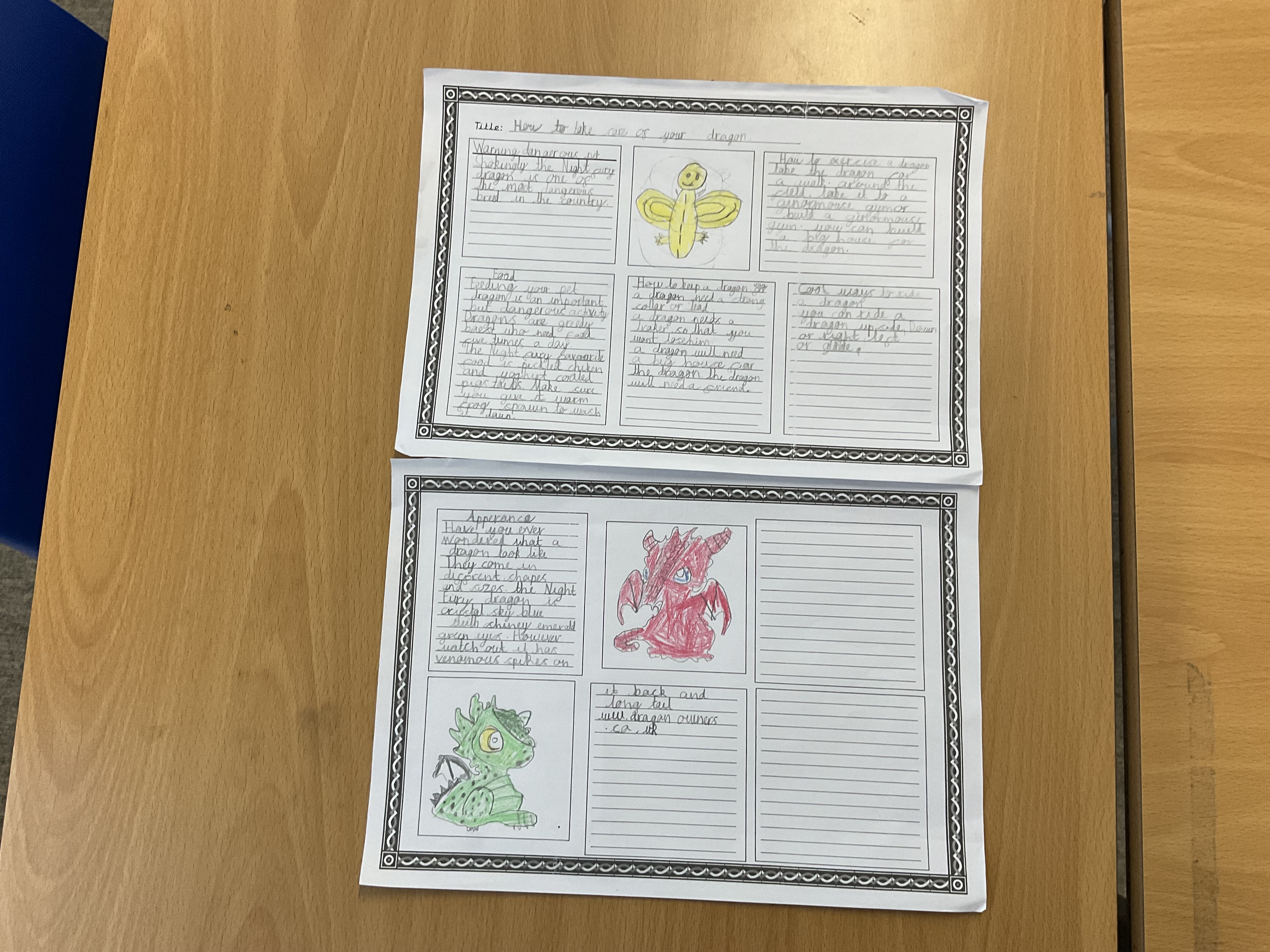 This week in English, the children have been publishing their non-chronological report. They have really time to produce their best handwriting and draw some lovely illustrations of dragons.