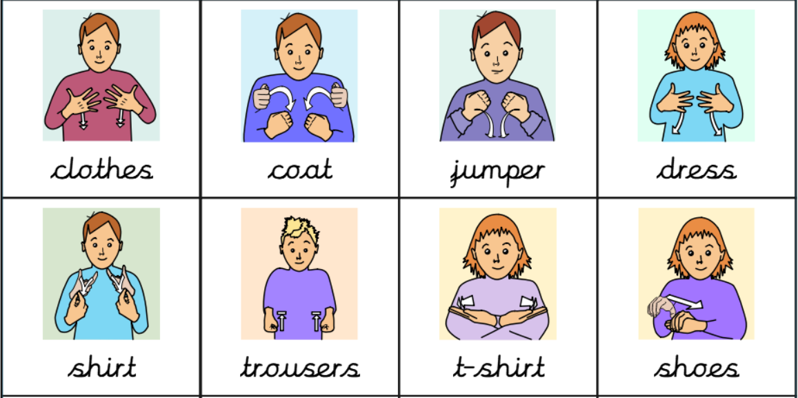 This term the year 4 pupils have been learning about people and clothes. They have previously leanrt signs to describe a person's facial features and hair so they are now learning to combine all these signs to describe a person.