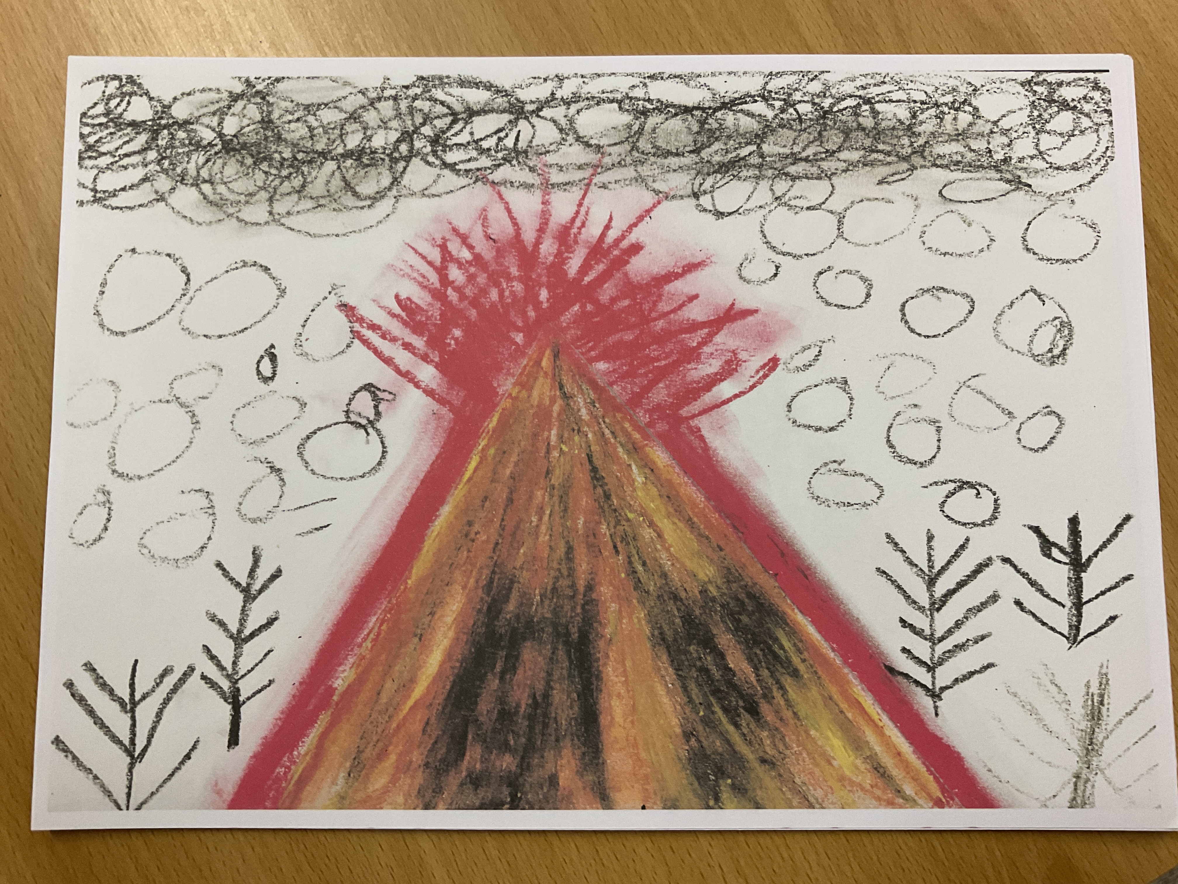 "Your Voice Matters!" has been the theme of our mental health week in school this week. We have been busy voting for new items in our playground. We'll have to wait a little longer to find out the results from all the classes around school but we have had a chance to share our thoughts. We have also been artists this week, thinking about texture. Have a look at some of our finished volcanoes. We used pastels to create different textures on paper.