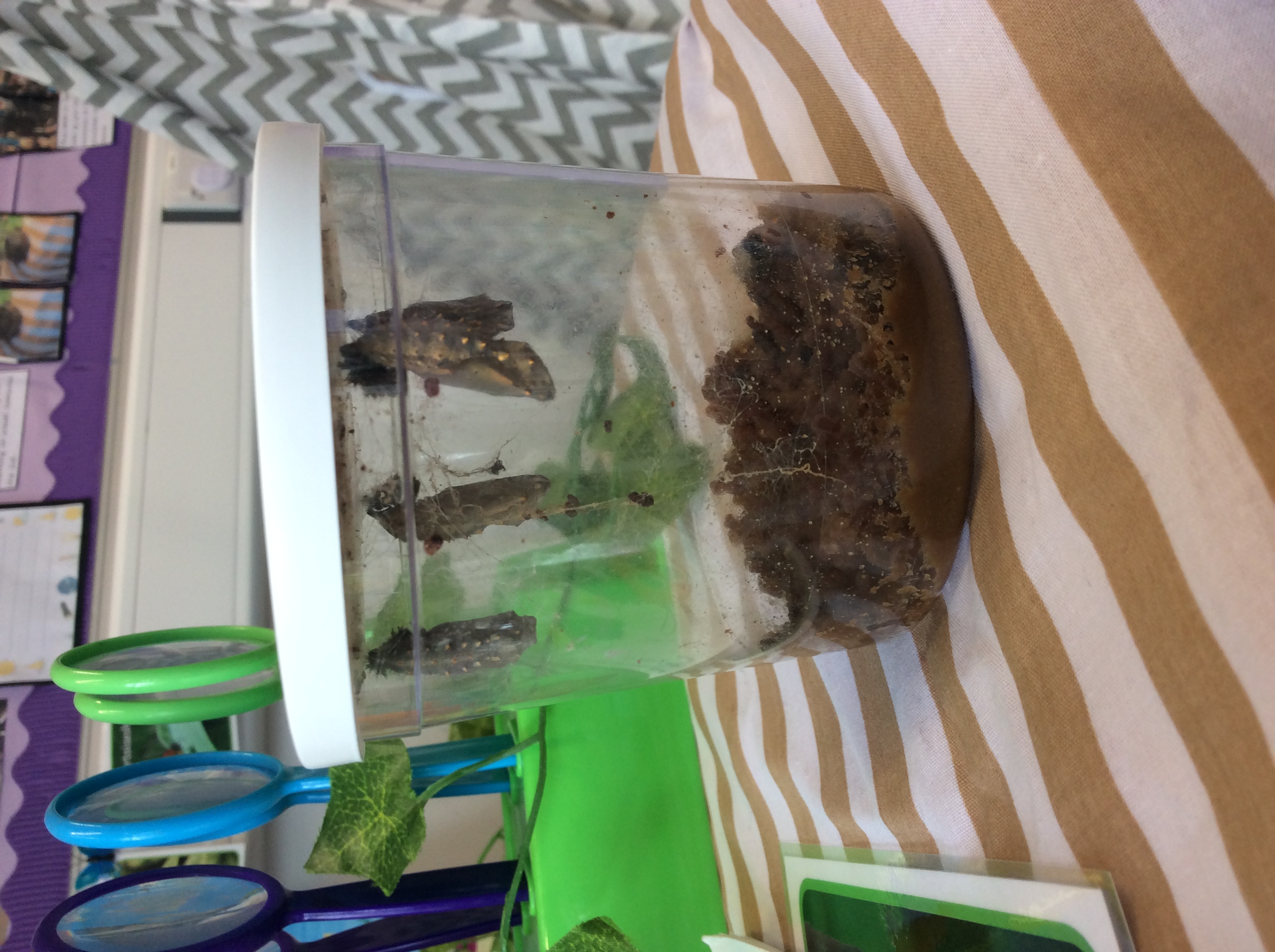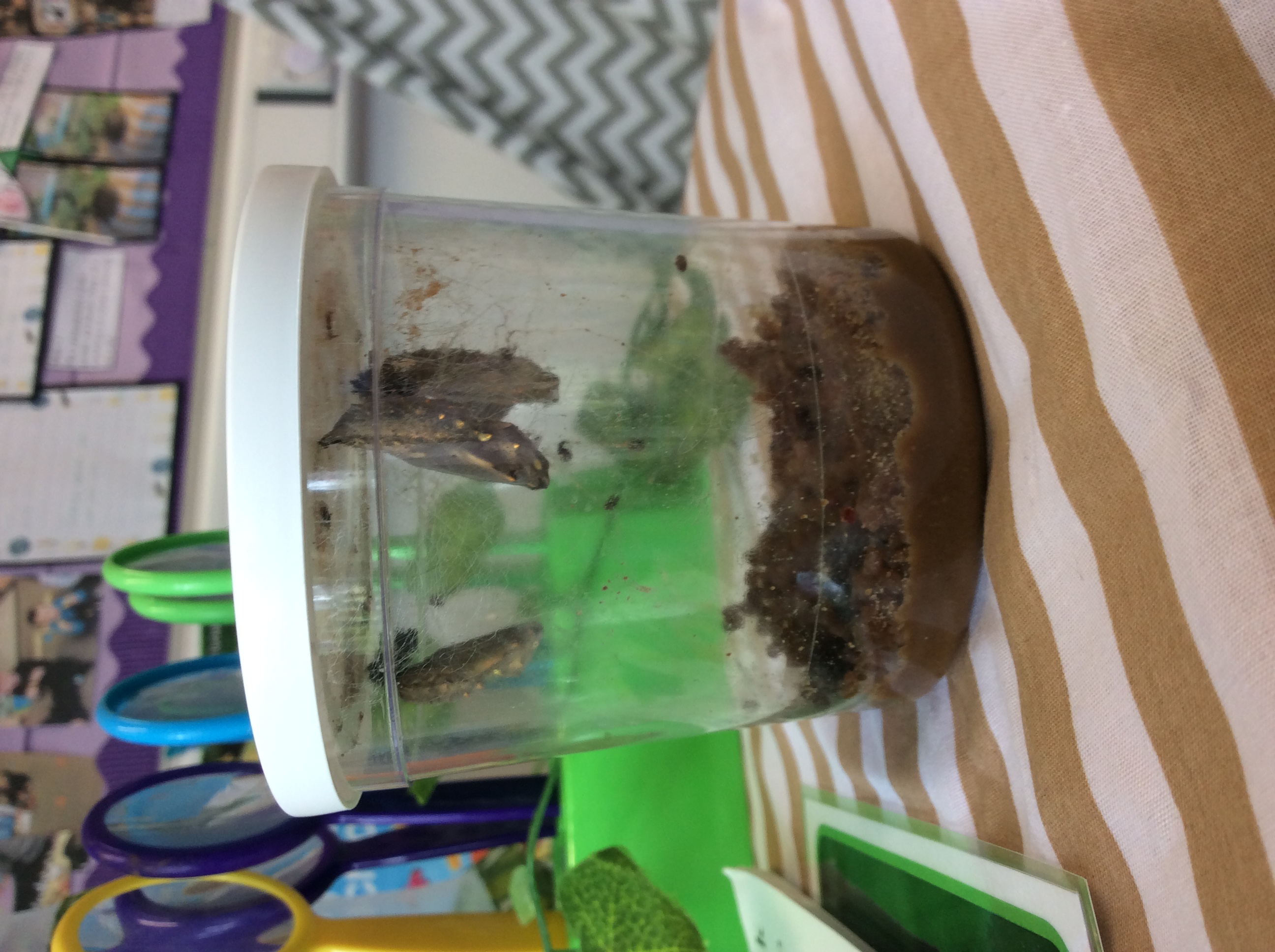 Caterpillar update......We now have chrysalises! We are very excited to see them emerge as butterflies!