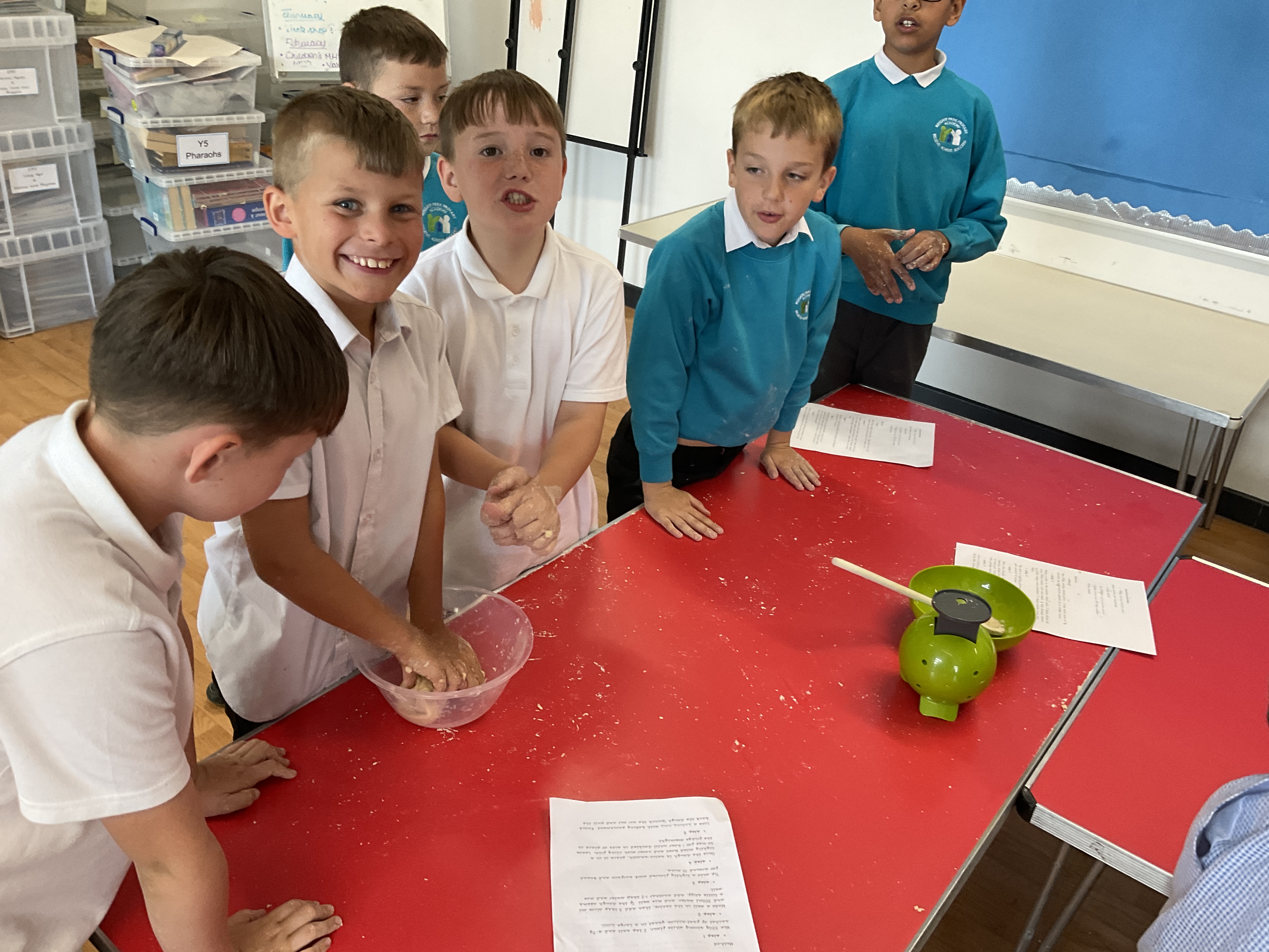 It is that time of the week again. Time for another blog. In maths we learnt to add and take away fractions. In English, we have been researching and learning about Tutankhamun in order to write a biography about his life. In BSL, we have been testing our skills signing about jobs and transportation. We worked collaboratively in topic to research and find out about ancient Egyptians. We found out about a specific topic and then answered questions thinking like historians, asking what, why, how and when about what we found out. On Thursday, we finally got to make our bread. We first thought about how flour is made and then we looked at different types of bread. We discovered that Egyptians would have made flat bread. We wanted our bread to rise so we added yeast to our dough. We really enjoyed eating our bread later in teh day, especially when we added butter and jam.. yummy! Have a look at some of the photos we took whilst making our bread rolls.